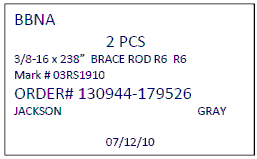 diameter, rod length, erection part mark, Birmingham Fastener Invoice # (If